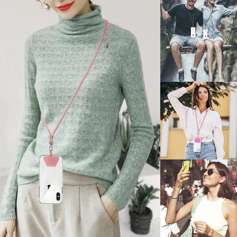 ✔️ Feather-light comfort that lasts all day: Crafted from soft, skin-friendly nylon and reinforced with tear-resistant material, the HandyKomf™ band supports your phone without tugging on your neck or shoulders. Adjustable from 15.7 to 27.6 inches and fully compatible with wired and wireless charging—no hassle, just pure convenience.